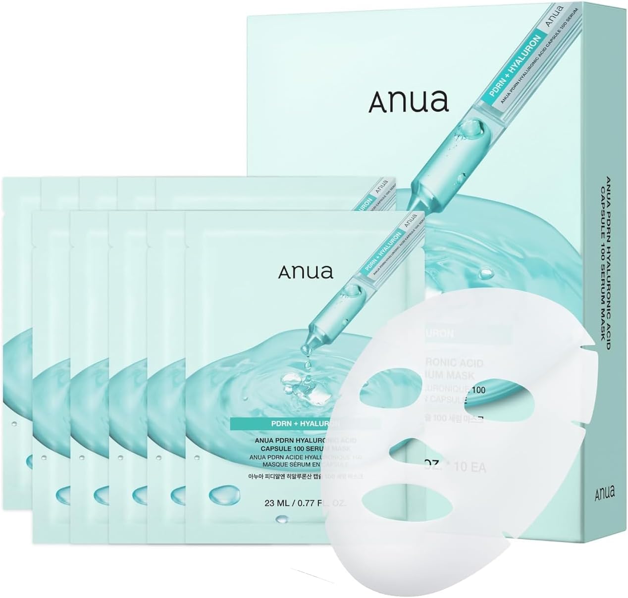 ANUA PDRN Hyaluronic Acid Capsule 100 Serum Mask is a Korean sheet mask designed for daily use to deliver intense hydration, nourishment, and a radiant glass-skin glow. Infused with Salmon PDRN, hyaluronic acid, and collagen, it helps replenish moisture, improve skin elasticity, and support skin regeneration. Each mask is enriched with a concentrated serum that soothes, plumps, and revitalizes the complexion, making it ideal for self-care at home. Lightweight and gentle, these masks are suitable for all skin types, leaving skin soft, smooth, and luminous. Pack contains 10 sheet masks for convenient daily skincare.