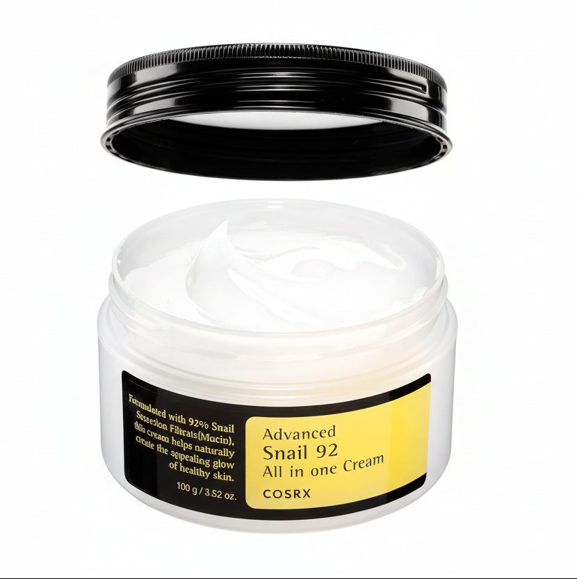 COSRX Advanced Snail 92 All-in-One Cream is a rich yet lightweight moisturizer formulated with 92% Snail Secretion Filtrate to deeply hydrate, repair, and nourish the skin. This versatile cream helps improve skin elasticity, soothe irritation, and support skin regeneration, leaving the skin soft, smooth, and revitalized.
