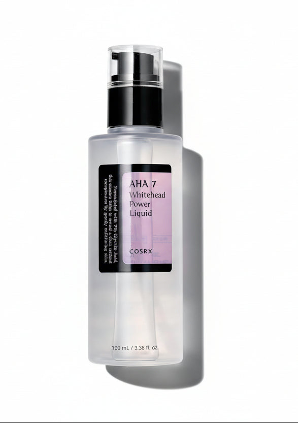 COSRX AHA 7 Whitehead Power Liquid is a gentle yet effective chemical exfoliant formulated with 7% Glycolic Acid (AHA) to help remove whiteheads, smooth skin texture, and minimize the appearance of pores. This fast-absorbing liquid exfoliates dead skin cells, promotes skin renewal, and leaves the complexion brighter and clearer.