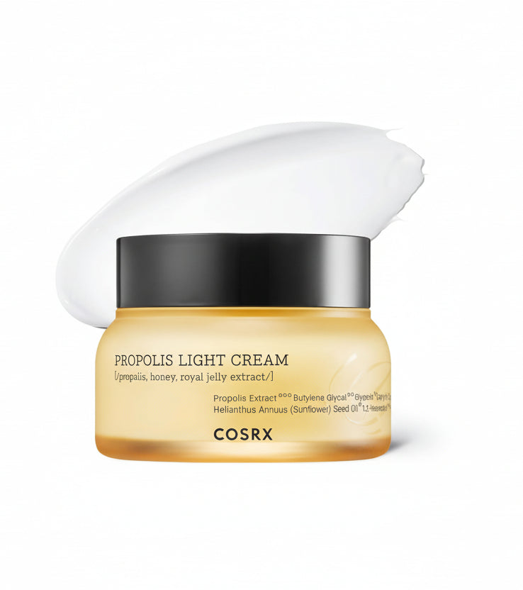 COSRX Full Fit Propolis Light Cream is a lightweight, nourishing moisturizer formulated with propolis extract to hydrate, soothe, and strengthen the skin barrier. This gentle cream helps improve skin elasticity, calm irritation, and leave the skin feeling soft, smooth, and revitalized.